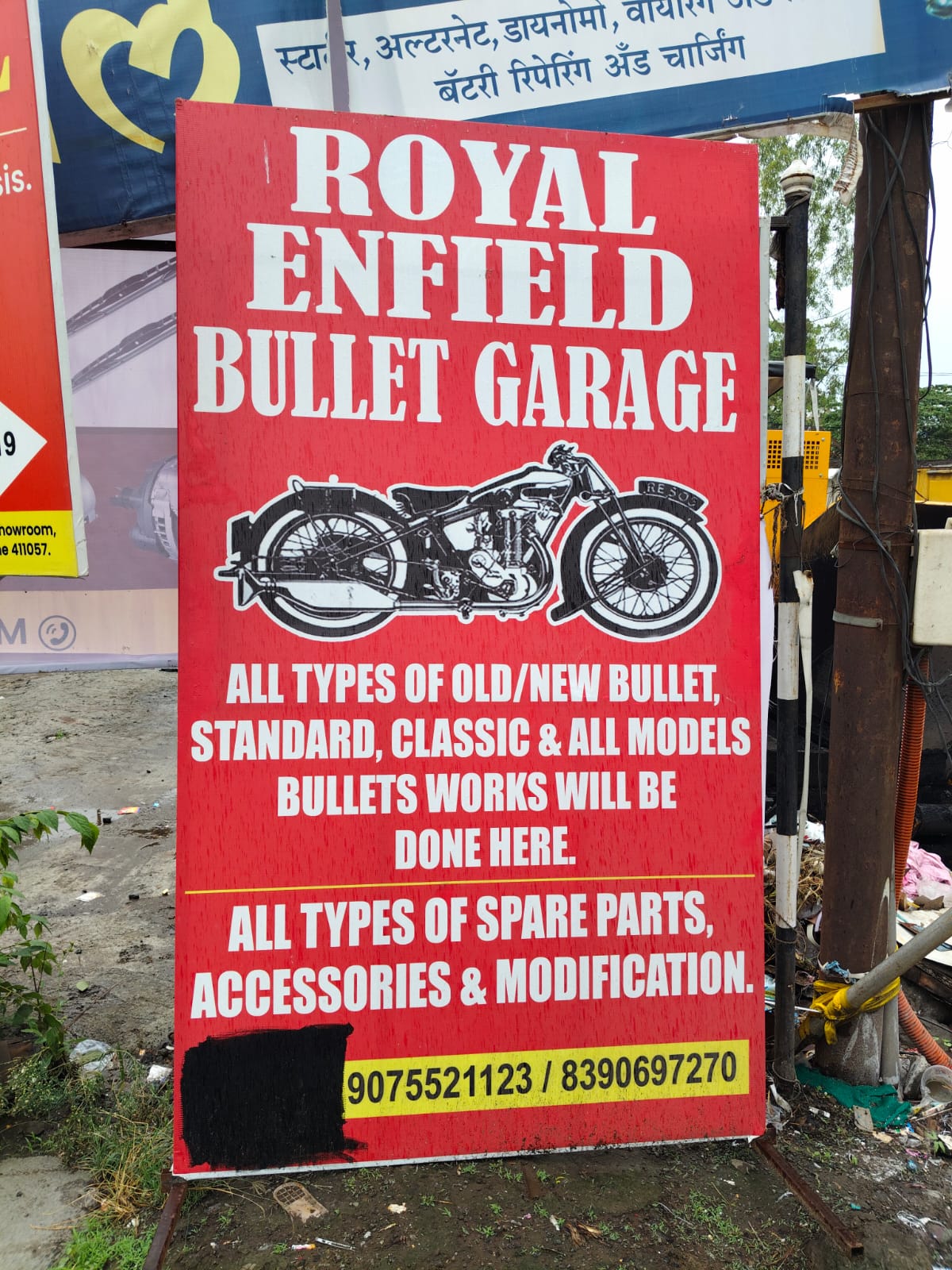Royal Enfield Bullet Garage is a dedicated service destination for all Royal Enfield enthusiasts, offering expert repair, maintenance, and customization for old and new Bullet models. Located conveniently, our garage specializes in working on Standard, Classic, and all other Bullet variants with a focus on quality workmanship and customer satisfaction. We provide comprehensive services that include general repairs, performance tuning, and aesthetic modifications tailored to customer preferences. Our well-stocked facility offers all types of spare parts and accessories, ensuring that every requirement is met under one roof. With a team of skilled mechanics who understand the intricacies of Bullet motorcycles, we guarantee reliable and efficient service for every ride. Whether it's regular maintenance or a complete customization job, our garage is committed to delivering excellence. Contact us at 9075521123 or 8390697270 and experience professional Bullet servicing designed to keep your motorcycle running strong and looking great.